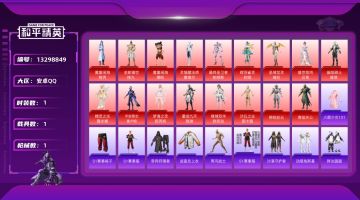 [13298849]实名: 可修改 时装数: 1 载具数: 1 枪械数: 1 战备数: 1 神级装扮: 青焰关公,银枪赵云,沙丘之主-图卡盟,镜域双华-欧若拉,墨龙九天-敖渊,梦海之灵-妮芮妲,宇宙意志-塞卢姆,精灵之光-露米娜,幽焰骑士-维塔 ,金蛇镇世-烛九,盛世惊鸿-云鸾,圣域龙灵-瑞拉,辉羽雀灵-初翊,最终圣卫者-帕修斯,灵猫魔法师-塞维尔,魔童闹海-哪吒,魔童闹海-敖丙 热门装扮: 火箭少女101(老101),奇异狩猎者,梦幻火箭(新101),蝶舞迷情,古堡领主,南瓜骑士,红伞翩翩,星际漫游者,极限特训,幻影战神,甜心巧克力,未来战士,呆萌铁蟹,数码大师,守护骑士,快乐主宰,怪诞乔克,深海小丑鱼,星之信仰,深渊皇后,荒野猎神,金风玉露,深海曼妙,天启纪元,宝贝奶油派,浪漫波比,天使彩虹糖,梦魇先生,放客神游,暗夜武装,银河战甲,火曜朱雀,万圣娃娃,水曜玄武,土曜战麒,迅捷狂鲨,木曜青龙,金曜白虎,金属狂野,静灵氛围,鹰眼刺客,智能音符,缤纷油彩,狂徒小丑,花面小丑,酷熊伴侣,王子的夏天,萌熊伴侣,向日葵,爱崽白熊,好奇恐龙,幻彩马卡龙,粉色回忆,甜蜜誓约,都市猎人,狮王雄心,暗翼战神,恒星战甲,东方飞龙,黄伞悠悠,香水柠檬,怪兽之王,诡面斩,锦绣火鲤,彗云及圣,天禅智恒,PEL轰鸣竞梦者,绚金战神,麻辣鲜香锅,苍蓝魅影,翡翠骑士,极致幻想,草莓生巧,炙焰红王,花间之火,冰霜白皇,新星烈龙,王牌四分卫,银刃赛罗,扶摇飞仙,精灵迷巫,潮汐统领,童趣迷兔,迷蝶贵族,狩月元帅,雪国幻梦,华贵君王,琉璃脉冲,俏皮狐尾,心之恋语,星空之魅,山涧鹿灵,绮梦青鸾,黄金大亨,星之彼岸,相思残雪,甜梦冰蝶,绿野柔风,馨动时刻,烈焰拳霸,炙焰赤龙,飓风飞鹰,虎啸骄阳,迪迦闪耀型,赛罗闪耀型,巡查员衣服,冥河战士,枪炮玫瑰,蜜桃特工,蝶舞蔷薇,葫芦兄弟,铁血龙王,显圣真君,桀骜红莲,焰龙焚天,林间仙鹿,彩虹鹿灵,绯红秘境,暗夜玫瑰,沙场疾风,花影阑珊,俏雪含霜,吟月归客,齐天大圣,洛天依,黑伞漫漫,蓝莓炮弹,零号机款机体服,初号机款机体服,2号机款机体服,幻情紫藤,青葱仙萝,金风银杏,绚金瑰梦,流星咚咚,精灵娃娃,酣梦娃娃,甜心娃娃,暗星紫秘,天之羽翼,焦糖拿铁,碧影闪光,薄荷物语,岚岚物语,海盐物语,百合蜜语,银龙傲海,骨龙祭渊,黄蜂伯爵,海渊国主,恐龙拽拽,废弃,庄周梦蝶,炙焰牛王,甜梦小狐,筑梦精灵,紫电风暴,赤焰黑爵,绚丽摇曳,闪耀律动,冷魅冰骑,橘柚倾心,幻梦音符,星夜魔法师,圣光天使,霞光圣骑,寒光使者,妙趣可丽,闪光银龙,暖熊萌萌,复仇流浪者,荒漠赏金,S1赛事上衣,绒雪飘舞,傲雪凌霜,霁雪冰心,垂柳戏鸭,灵感创作师,霓裳武神,鸾凤武仙,朗月武圣,盖世英雄,太空嘟嘟,彩虹甜喵,女娲后裔-赵灵儿,蜀山剑侠-李逍遥,甜蜜草莓,千面幻镜,旋转彩虹,冰川粉黛,冰川红玫,冰川幽秘,沙漠守护者,桃夭倾城,暗夜行者,暴走罗小黑,仓鼠灰灰,潮萌小黄鸭,大橘为重,恶魔喵喵,激萌罗小黑,浪客战士,罗小黑,萌神柯基,奶芙汪汪,胖达团团,胖达圆圆,奇迹天团,蔷薇魔法师,软萌银虎,神秘黑猫,动感兔斯基,兔兔白日梦,海螺星光,碧穹智者,银红美神,光明术士,青空秋雨,启明星,歌者泠鸢,暗夜鎏金,星兔领航员,苔丝玫瑰,心之回忆,挚爱序曲,纯珍童话,音爆索尼克,绿野极光,炫光贝贝,赤蝎幽灵,寒蝎幽灵,派对舞王,畅跳缤纷,银碳小老虎,仲夏莫吉托,胡桃卫兵,雪梅暗香,诡夜天鹅,小鹦鹉BEBE,第五大道,彩虹嘻嘻猴,超级赛亚人孙悟空,超级赛亚人贝吉塔,飒粉甜心,碧蓝澄空,绿野邂逅,瑰丽时代,黄族统领,小可学妹,白勺歌姬,呆萌星弥,玉鳞金羽,南国舞曲,天星战神,璀璨巨星,未来歌姬,炎氏战神,大黄蜂,幻影,阿尔茜,猩猩队长,擎天柱,粉樱探戈,拂晓神骑,炫光之旅,至尊金龙外套,星点战士,铁甲悍将,鳞翅贤者,独舞天鹅,暗夜魅影,水仙星,蔷薇星,茉莉星,白兰星,萌物绒绒,闲梦青缨,巨渊蟹踪,天幕蝎影,双星鱼跃,勇猛狮王,射星猎手,无畏白羊,银瓶流水,双面双生,天衡星秤,神隐金牛,室女星神,牧神之羯,万古烈焰,宙之时溯,星云暗核,莲影清波,彩装战姬,憨憨奶龙,暖暖奶龙,傲傲奶龙,镜光幻境,紫钛骑兵,冰炎战车,熔岩统帅,夜幕颂歌,圣堂之誓,小叽联名款,猪猪侠,祥瑞锦鲤,机械师花傲天,甜心首席,繁龙极客,蜜语绒猫,辉耀战甲,绝色倾城,鎏金朋克,烟云彩露,严莉莉,美雪,美琪,小蓝,脉冲星,超弦星,电磁星,引力星,光极星,电波星,霓虹漫游,星空武士,冠军兔兔,鸢尾晶梦,创世·救赎,星梦奇缘,守护天翼,初号机 觉醒Ver.,金域紫灵,风幻水境,冰域雷影,金丰海韵,时空协奏·火花,时空协奏·和音,时空协奏·心弦,时空协奏·回响,狂花道·不知火舞,英伦信使,BEARBRICK,未来领航者,S1赛事套装,S1赛事裤子,千金淑猫,牡丹亭·游园,信仰神谕,脆鲨七海,月影灵韵,动力核心,女娲灵识,玄冥寒域,伏羲圣卦,羲和光序,萨利娅,幻梦之森,晶梦幻蝶,幻影飞狐,彩虹独角兽,月下星之子,樱桃泡泡,翎光蝶翼,桃粉嫣然,紫鸢之舞,戏水时光,星月云朵,雪月幻音,墨金战记,圣辉之星,智耀战神,天马座 星矢,仙女座 瞬,天鹅座 冰河,智慧纱织,凤凰座 一辉,天龙座 紫龙,绯果甜心,百变魔方,幻海仙踪,星穹咏叹调,御兔特攻,湮灭星辰,幻星舰长,幻彩电音,时光之誓,时光之吻,狂魅哈莉,狂魇小丑,冷漠罗丽,绯月迷踪,智趣喵喵,宁雨蝶,罗征,天穹,荧海星豚,桃源时光,绯穹魔姬,奇迹舞步-贝贝,奇迹舞步-雅雅,奇迹舞步-美雪,奇迹舞步-美琪,羊梦糖心,灵玺,冰魄,花灵,星渊,异瞳寒姬,克克莉丝,极意拳锋,震天雷神,