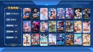 贵族等级:v10皮肤数:489传说品质54 生肖限定17 情人节限定6 荣耀典藏2 无双2 英雄数:129