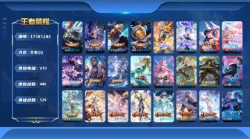 贵族等级:v10皮肤数:446传说品质65 情人节限定5 生肖限定12 荣耀典藏4 无双3 珍品传说4 英雄数:129