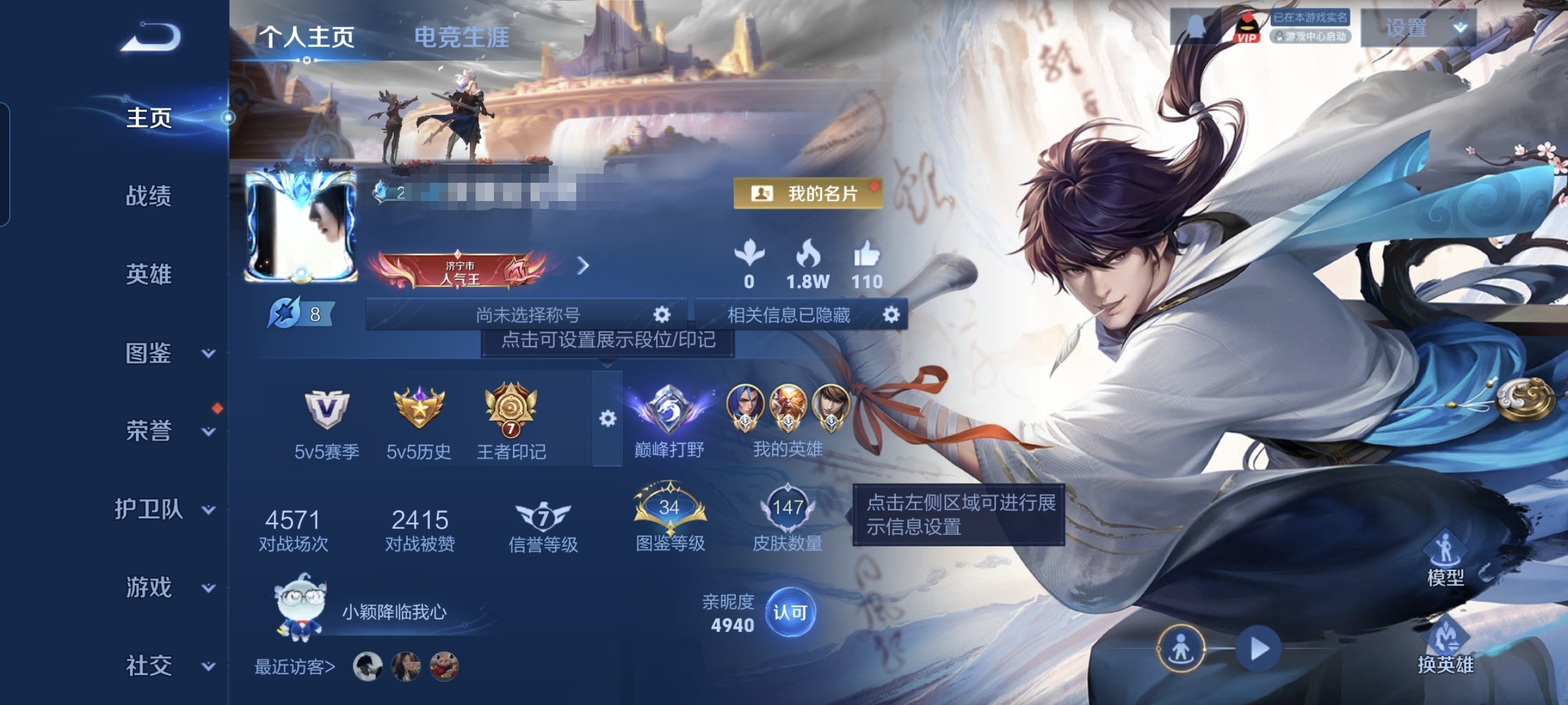 贵族等级:v6皮肤数:147传说品质7 生肖限定1 情人节限定1 英雄数:126
