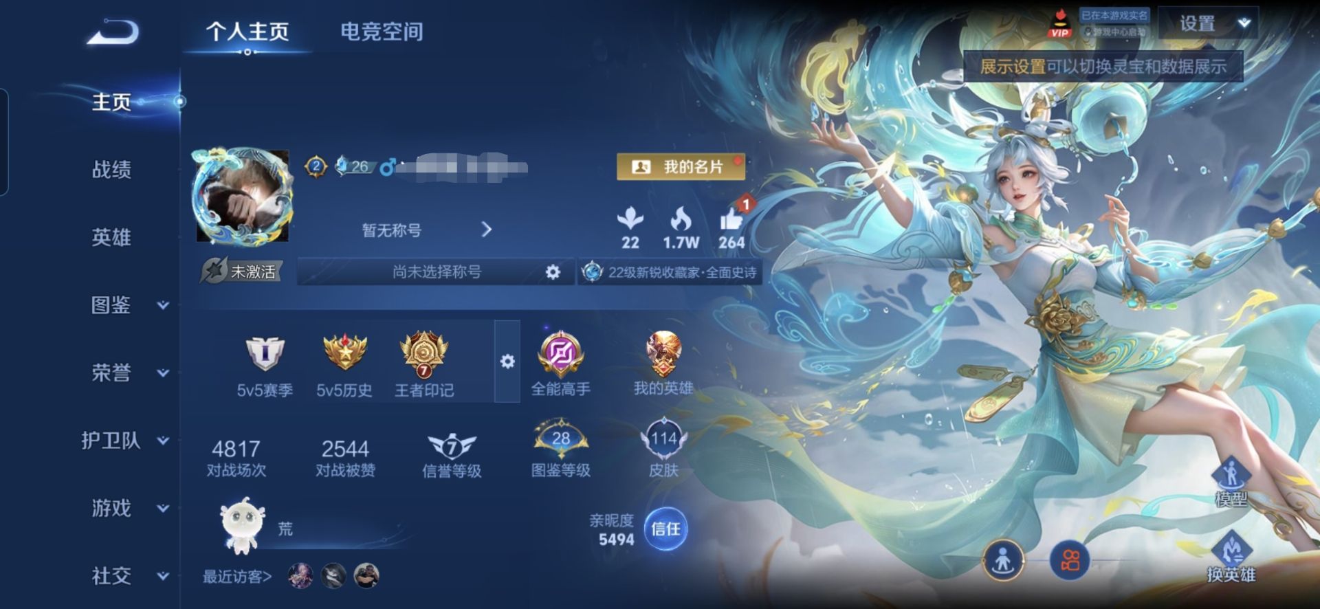 贵族等级:v7皮肤数:123传说品质7 英雄数:120