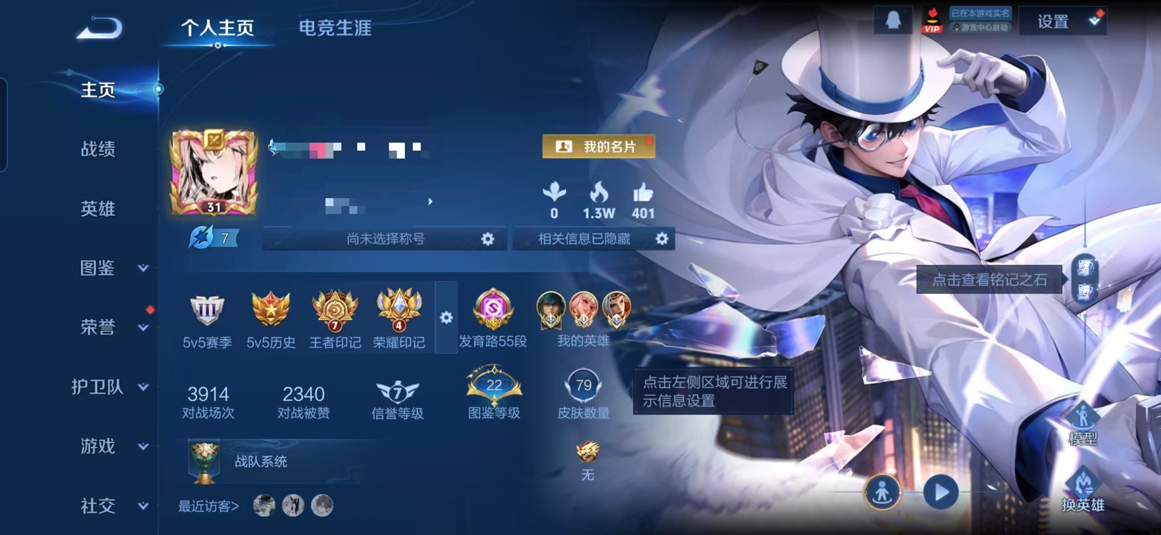 贵族等级:v6皮肤数:79珍品传说1 传说品质5 荣耀典藏1 英雄数:103