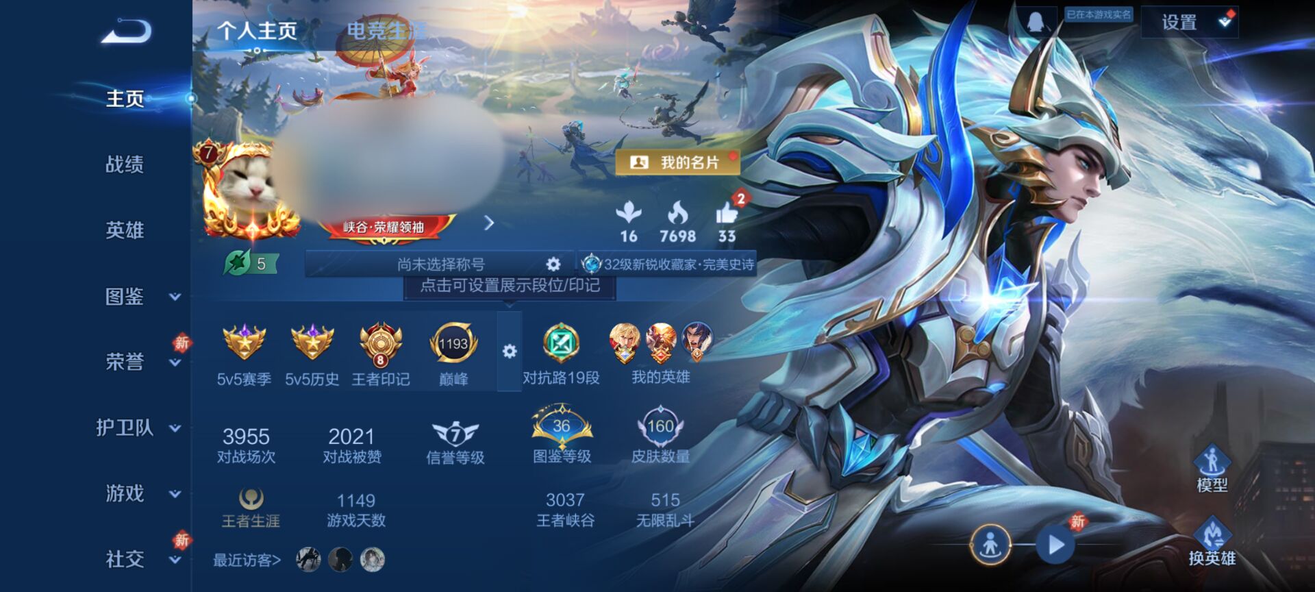 贵族等级:v7皮肤数:160生肖限定1 传说品质5 英雄数:126