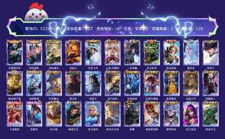 贵族等级:v7皮肤数:284传说品质7 生肖限定3 荣耀典藏1 英雄数:128