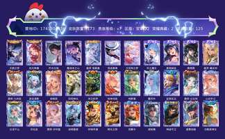 贵族等级:v7皮肤数:190传说品质15 生肖限定6 无双1 荣耀典藏1 情人节限定1 英雄数:125