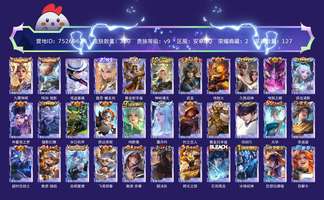 贵族等级:v9皮肤数:331传说品质46 生肖限定10 情人节限定2 荣耀典藏2 珍品传说1 英雄数:127