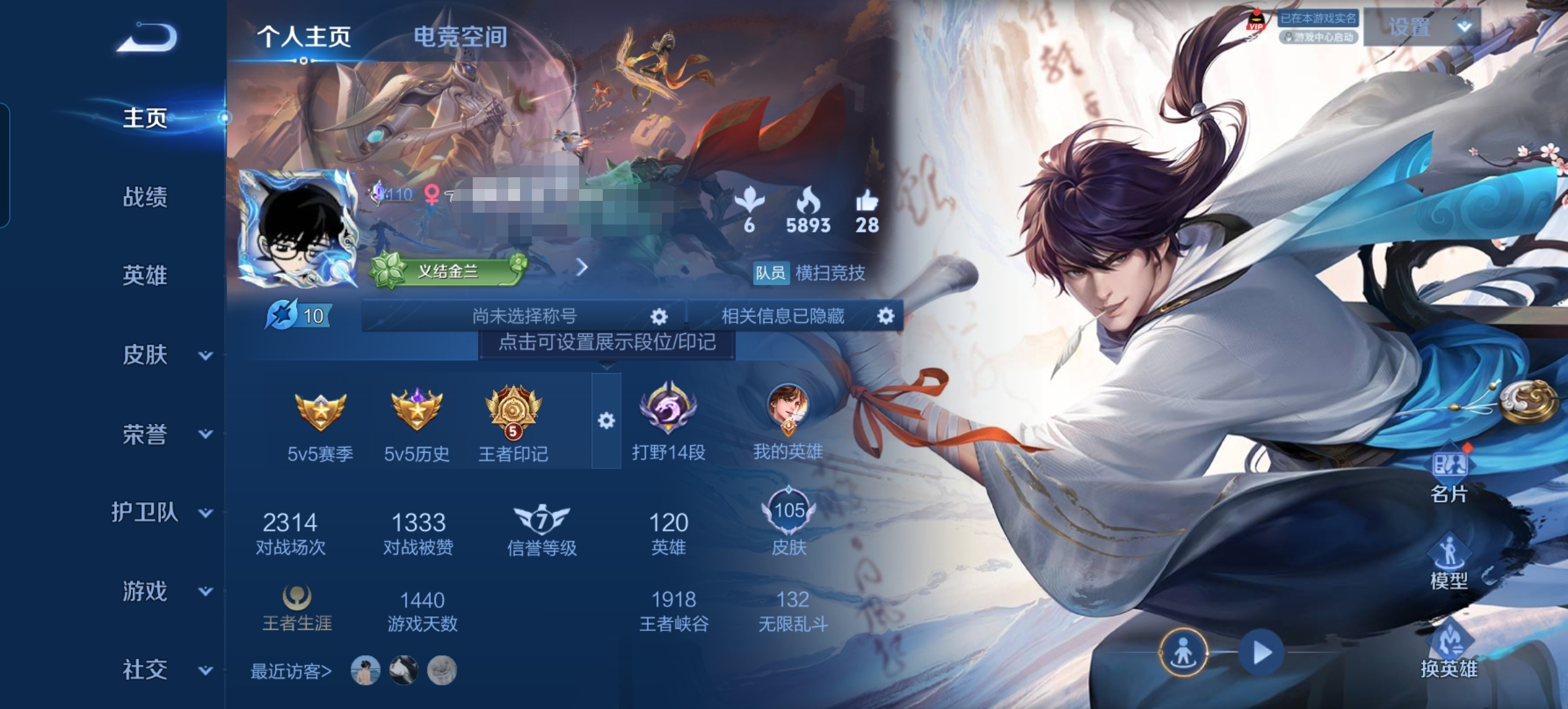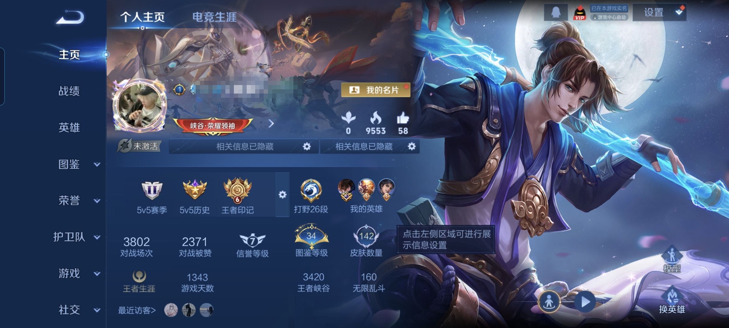 贵族等级:v7皮肤数:143传说品质8 生肖限定2 荣耀典藏1 英雄数:120