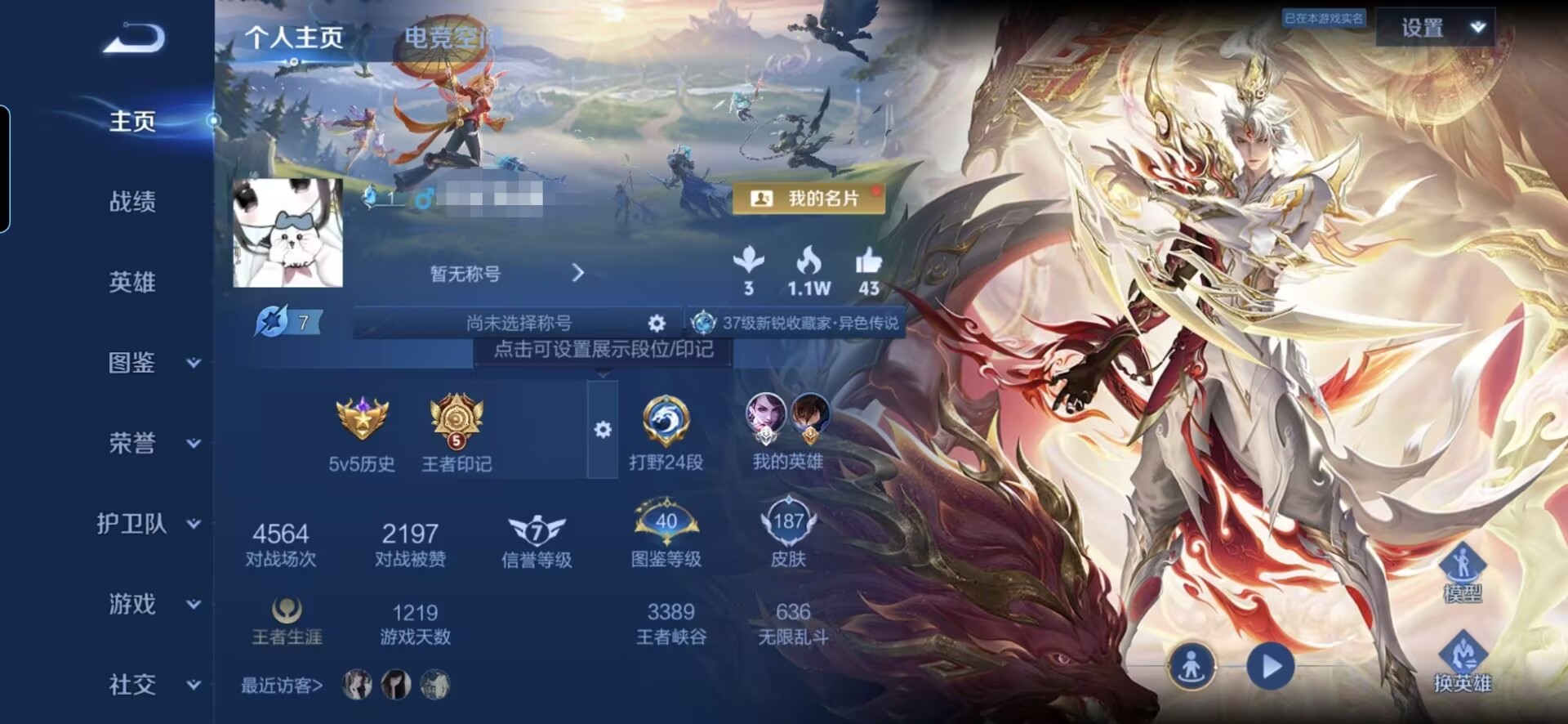 贵族等级:v6皮肤数:118传说品质7 生肖限定1 英雄数:123