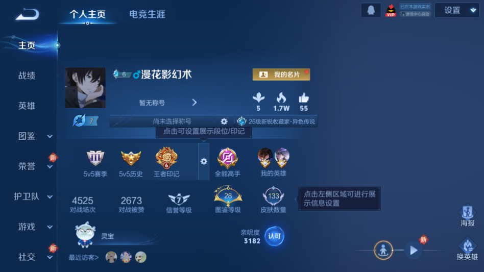 贵族等级:v5皮肤数:133传说品质4 生肖限定1 英雄数:123