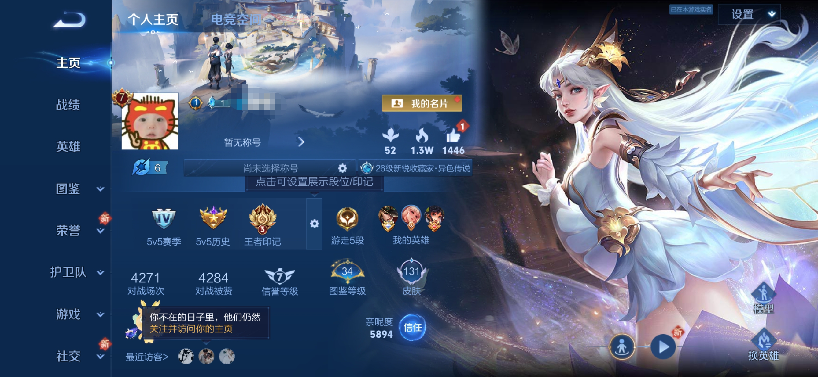 贵族等级:v7皮肤数:98传说品质12 情人节限定1 英雄数:116