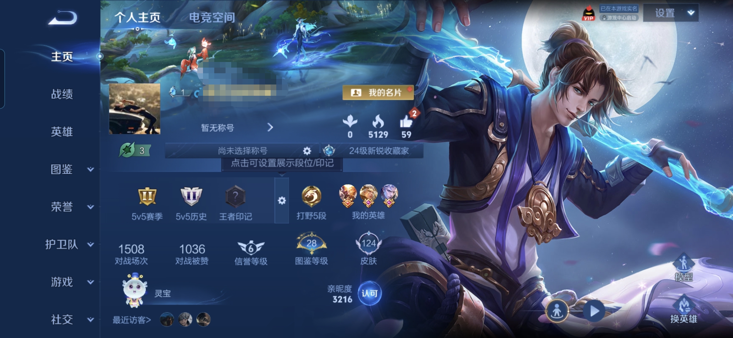 贵族等级:v8皮肤数:124传说品质13 生肖限定4 情人节限定3 英雄数:111