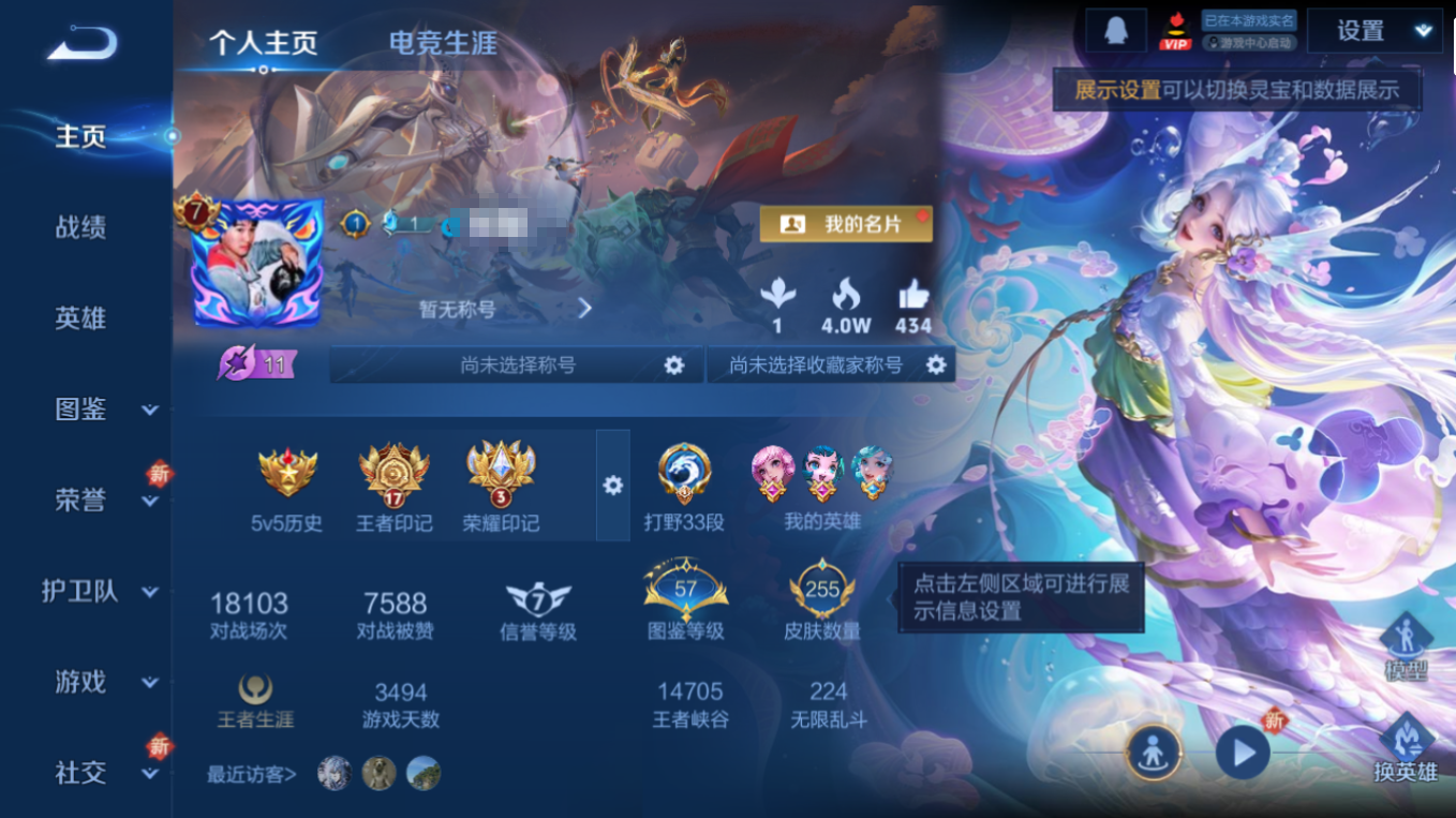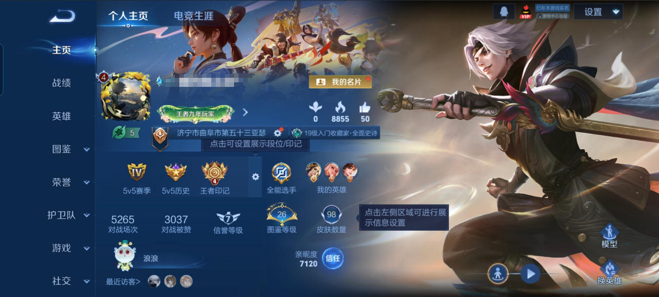 贵族等级:v7皮肤数:118传说品质13 生肖限定1 情人节限定2 英雄数:97