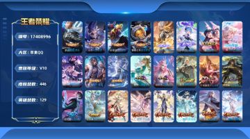 贵族等级:v10皮肤数:446传说品质65 情人节限定5 生肖限定12 荣耀典藏4 无双3 珍品传说4 英雄数:129