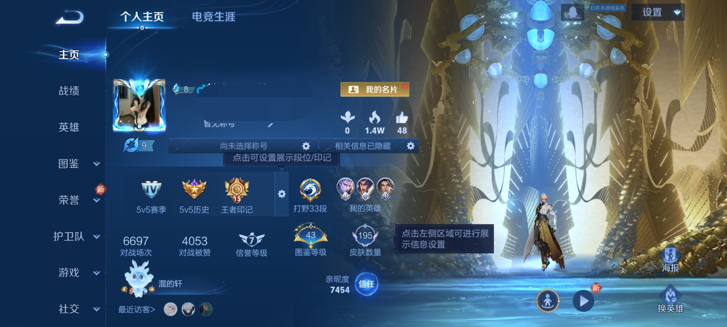 贵族等级:v7皮肤数:195情人节限定1 传说品质6 荣耀典藏1 英雄数:128