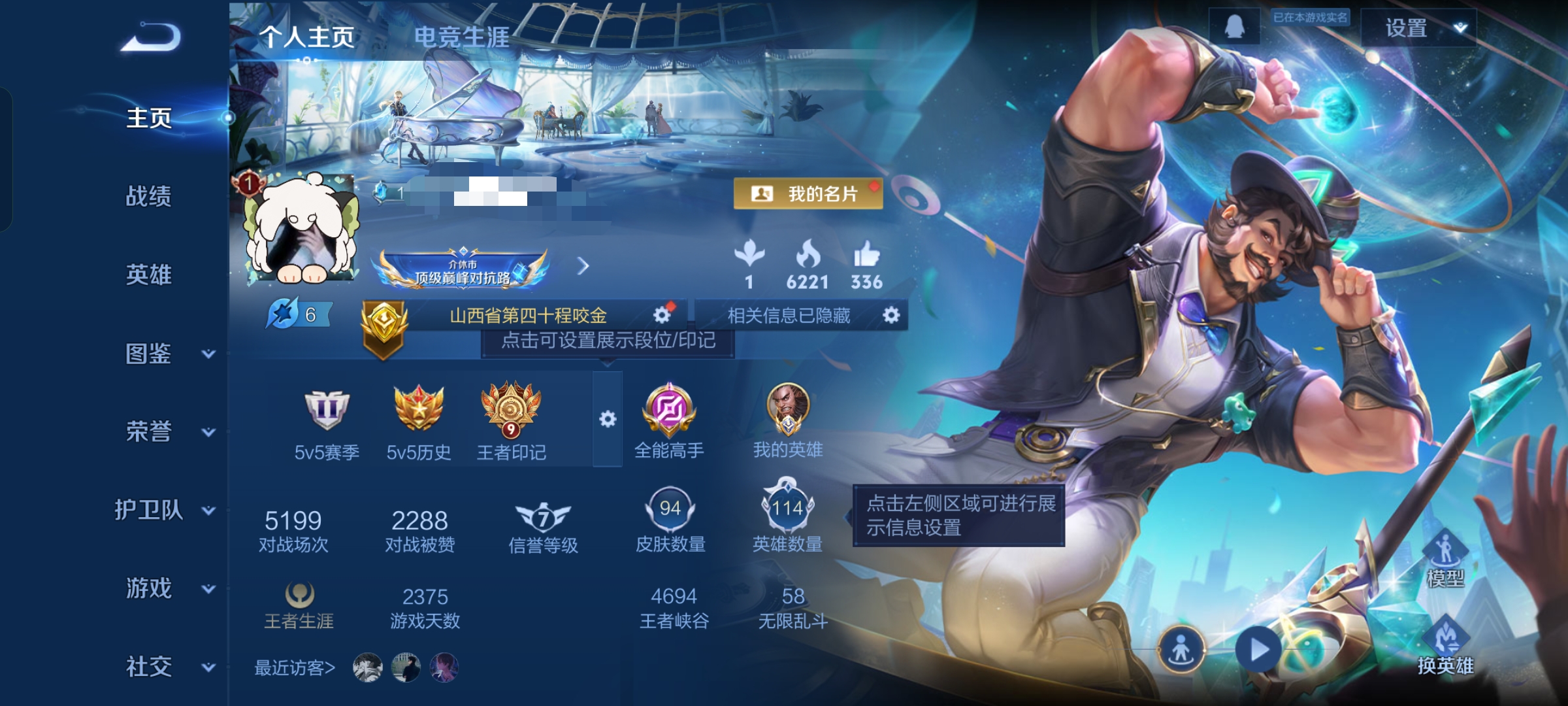 贵族等级:v3皮肤数:94传说品质1 英雄数:114