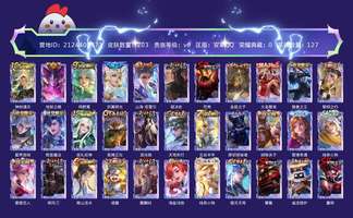 贵族等级:v8皮肤数:289传说品质22 情人节限定1 荣耀典藏1 生肖限定11 英雄数:128