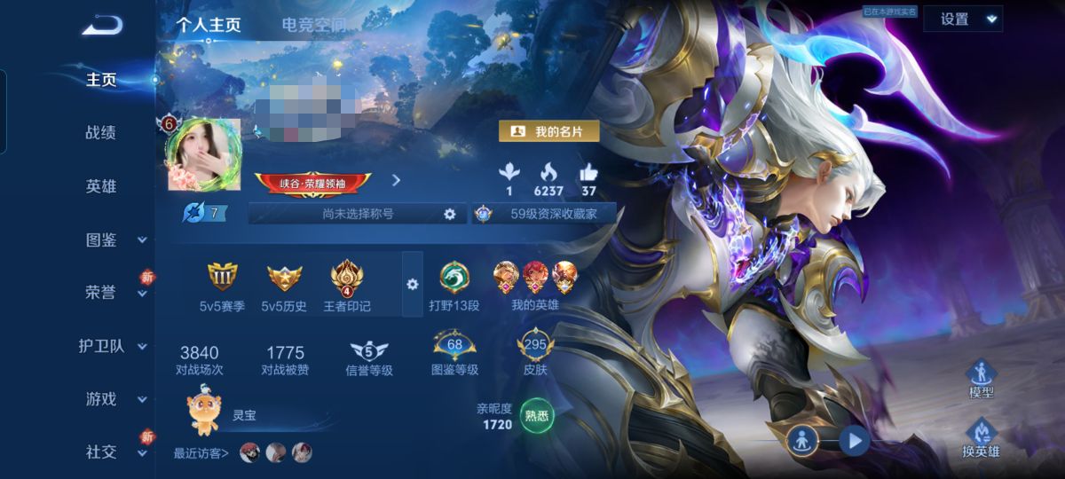 贵族等级:v9皮肤数:295传说品质35 荣耀典藏3 生肖限定6 情人节限定2 无双1 英雄数:123
