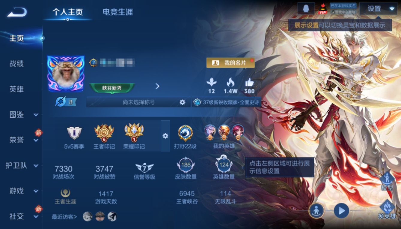 贵族等级:v7皮肤数:113传说品质10 生肖限定4 英雄数:122