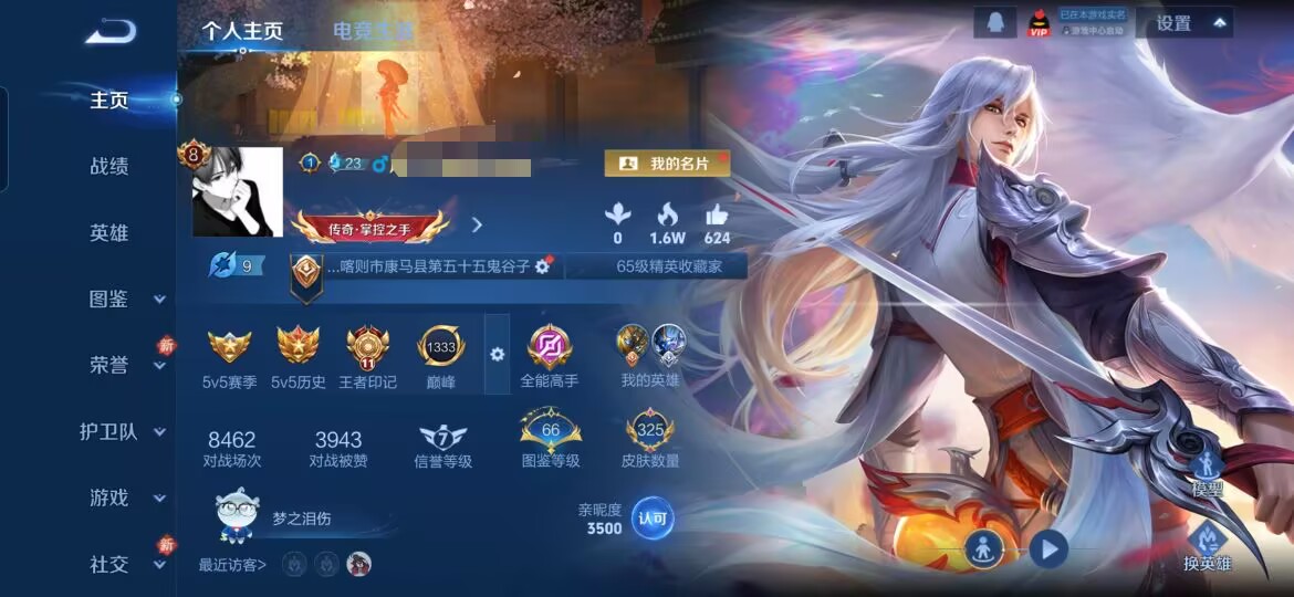贵族等级:v8皮肤数:253传说品质15 情人节限定2 荣耀典藏1 生肖限定5 英雄数:127