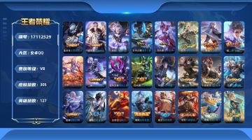 贵族等级:v8皮肤数:305生肖限定7 传说品质15 荣耀典藏2 情人节限定1 无双1 英雄数:127