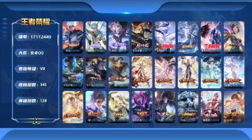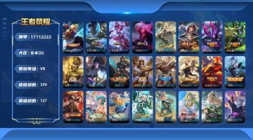 贵族等级:v8皮肤数:339传说品质12 情人节限定1 荣耀典藏1 生肖限定2 英雄数:127