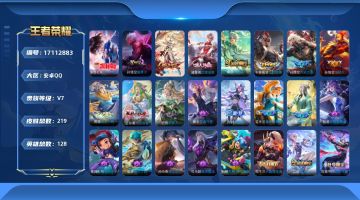 贵族等级:v7皮肤数:219传说品质6 生肖限定1 情人节限定1 珍品传说1 英雄数:128