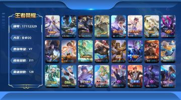 贵族等级:v7皮肤数:311传说品质11 情人节限定1 生肖限定4 荣耀典藏1 英雄数:128