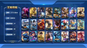贵族等级:v7皮肤数:80传说品质13 生肖限定1 英雄数:87