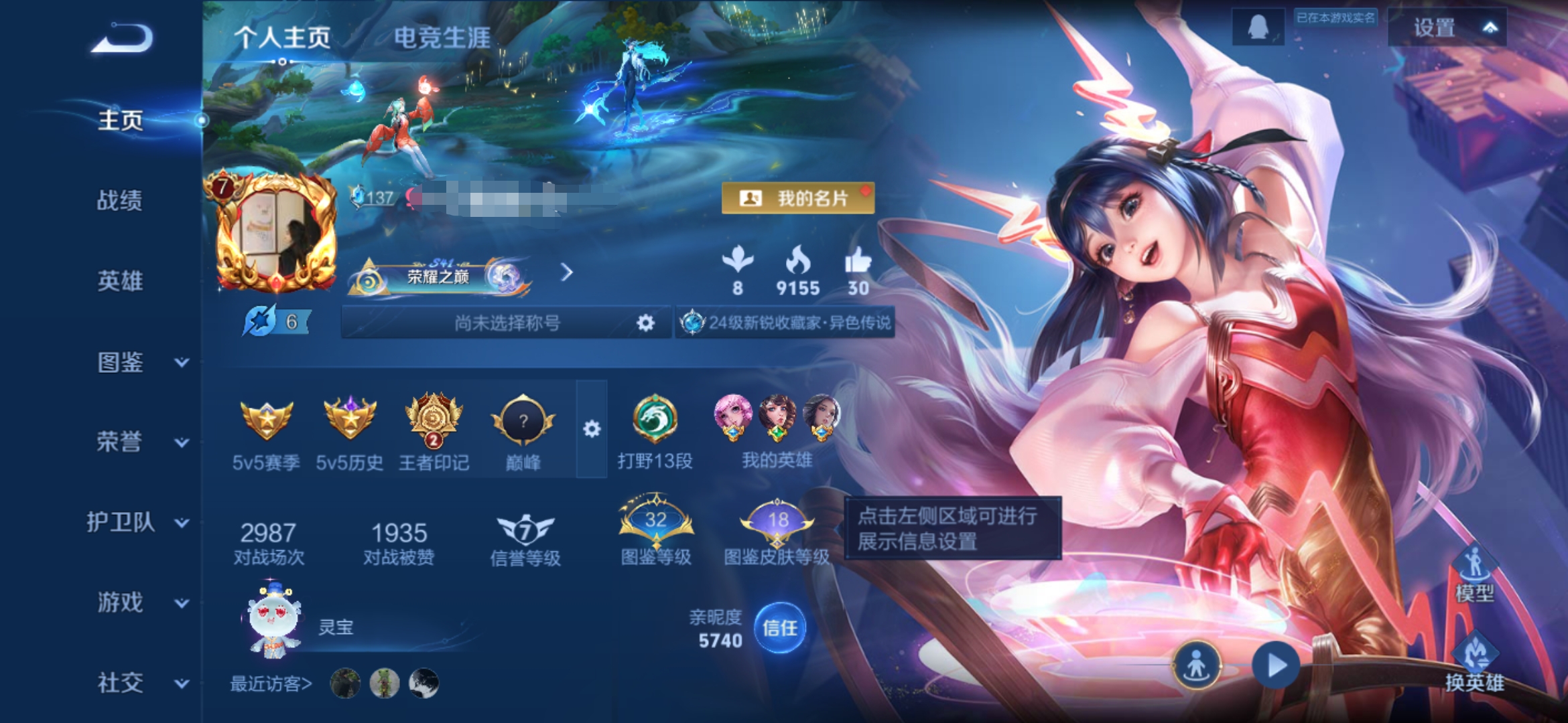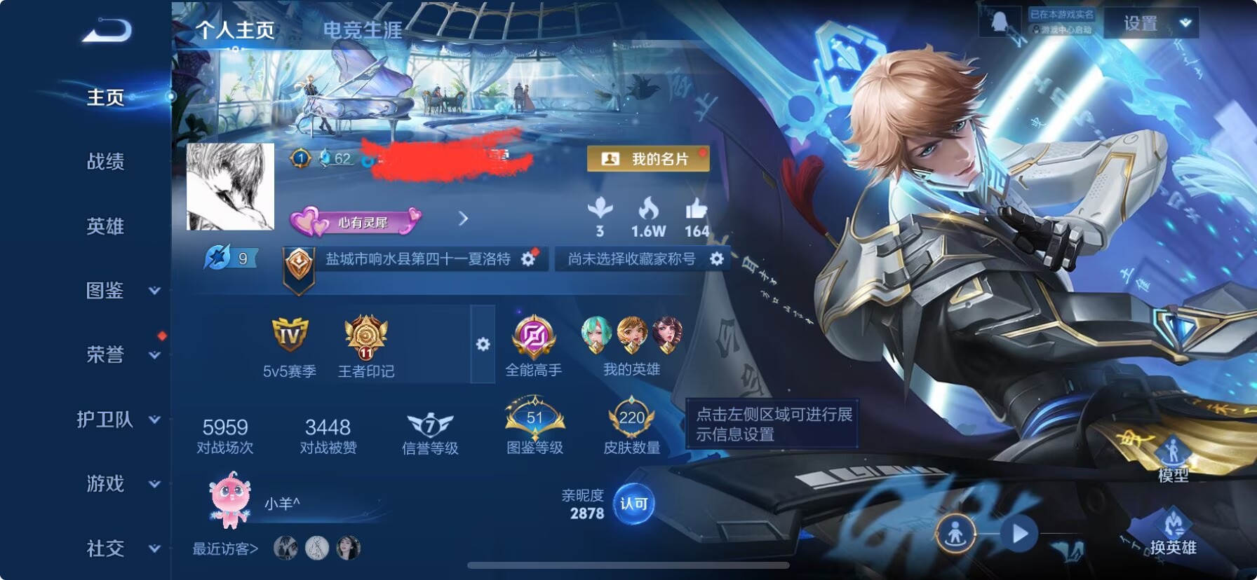 贵族等级:v8皮肤数:271情人节限定5 传说品质27 生肖限定11 荣耀典藏1 无双1 英雄数:128