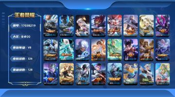 贵族等级:v8皮肤数:326传说品质18 生肖限定7 情人节限定4 荣耀典藏1 英雄数:128