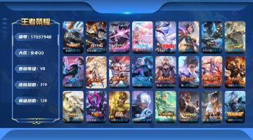 贵族等级:v8皮肤数:319生肖限定10 传说品质20 情人节限定2 珍品传说4 荣耀典藏1 英雄数:128