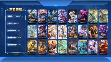 贵族等级:v7皮肤数:350传说品质18 生肖限定10 情人节限定2 荣耀典藏2 英雄数:126