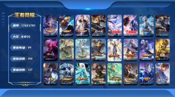 贵族等级:v9皮肤数:350传说品质22 生肖限定5 荣耀典藏3 情人节限定2 珍品传说3 英雄数:127