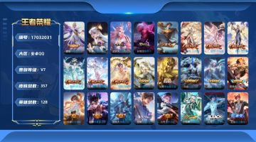 贵族等级:v7皮肤数:357生肖限定8 传说品质17 情人节限定1 荣耀典藏1 英雄数:128