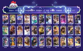 贵族等级:v7皮肤数:309传说品质18 生肖限定4 情人节限定1 荣耀典藏1 英雄数:127
