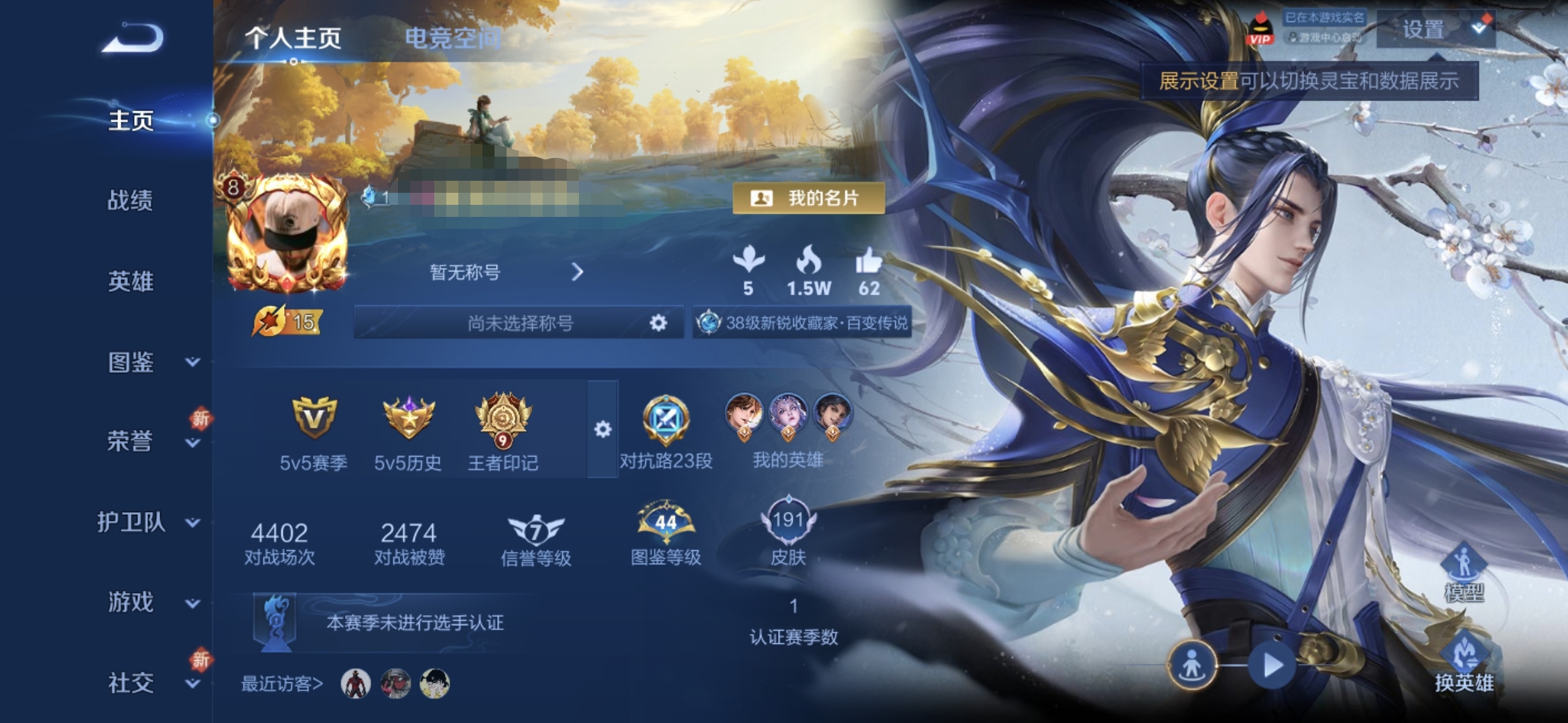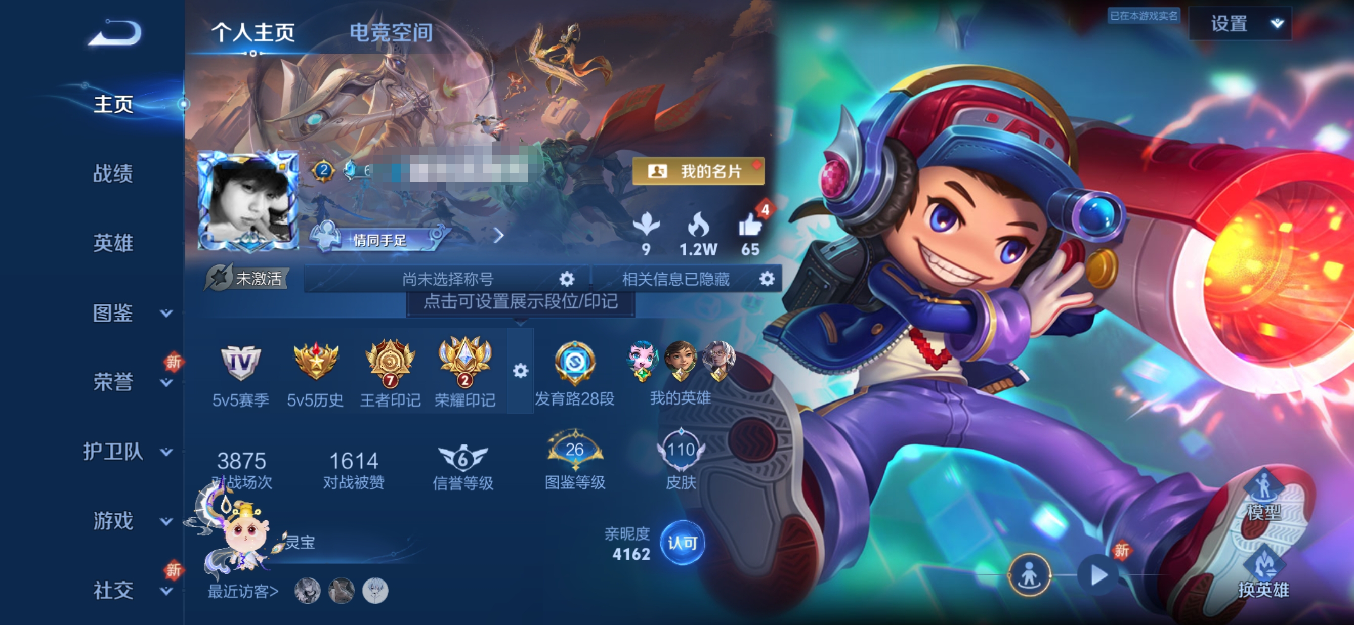 贵族等级:v6皮肤数:159传说品质4 生肖限定3 英雄数:124
