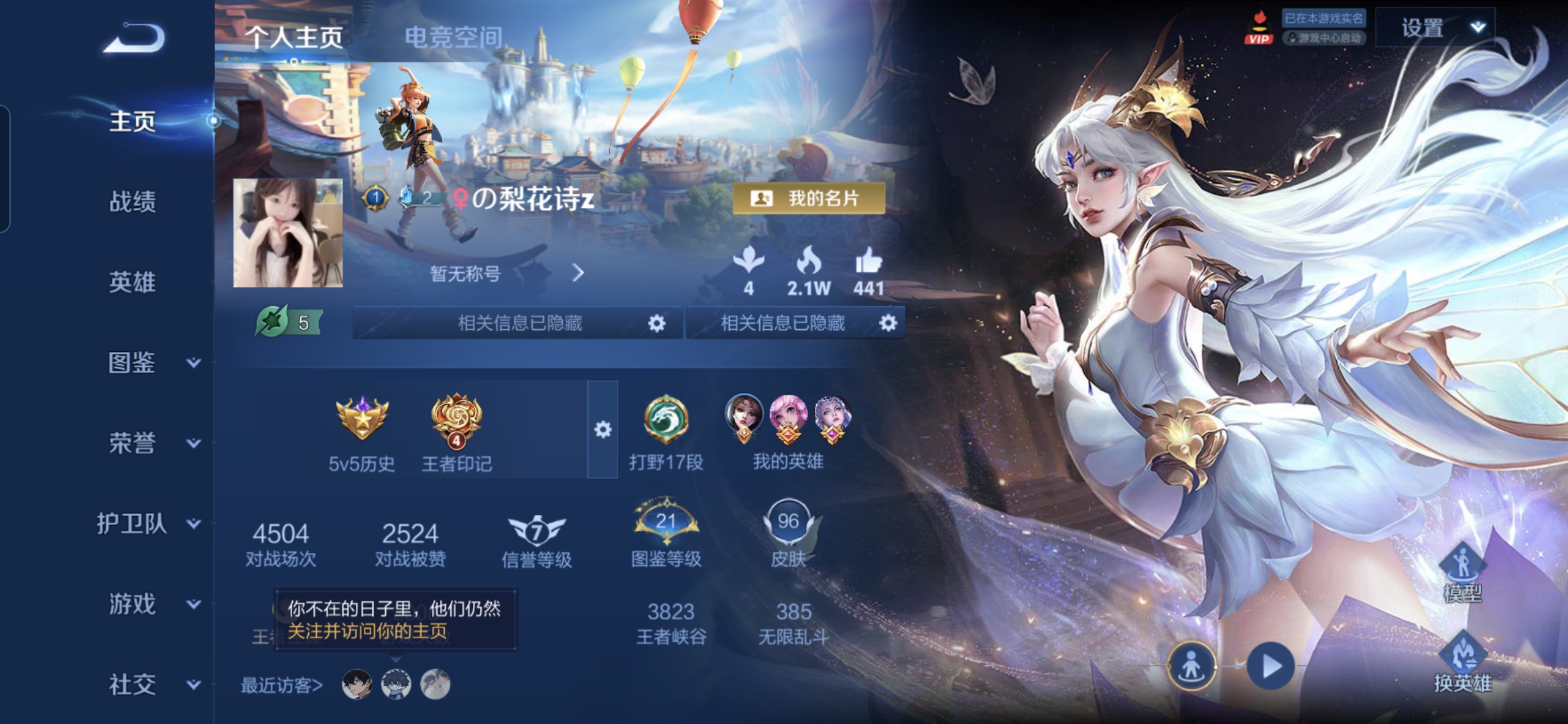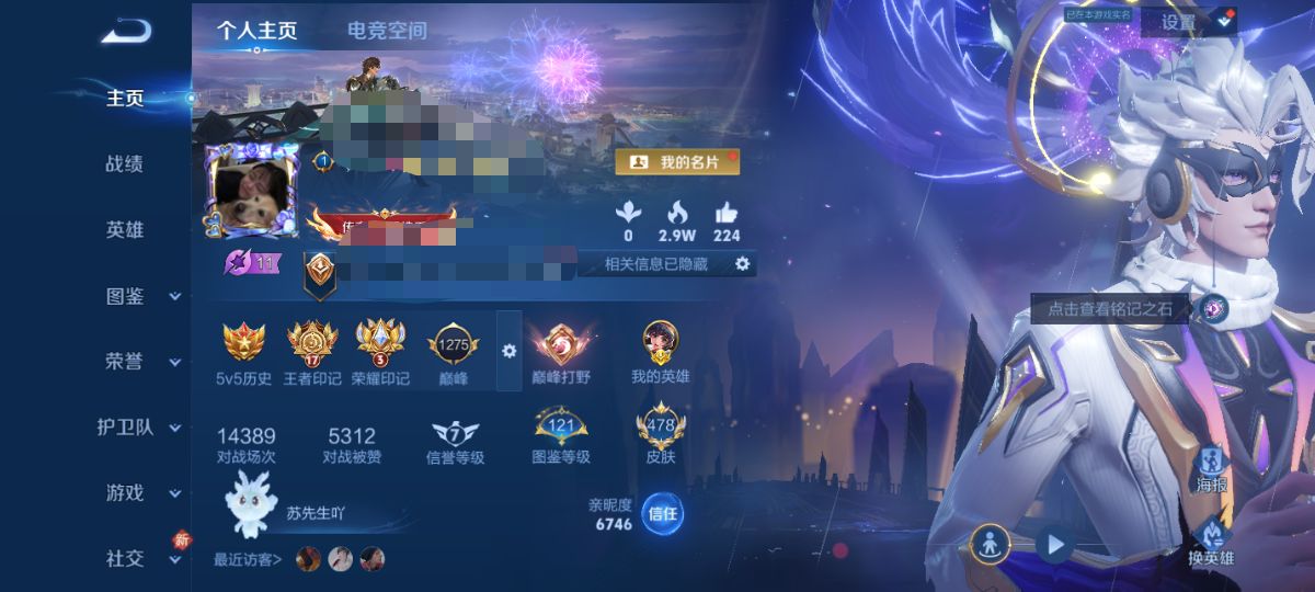 贵族等级:v6皮肤数:198传说品质4 情人节限定3 英雄数:121