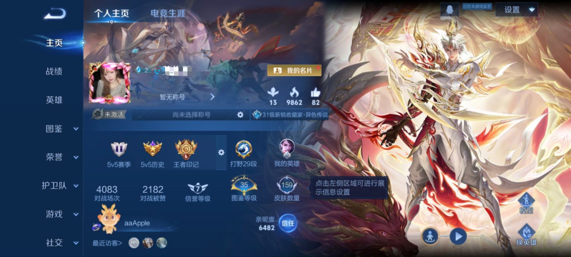 贵族等级:v7皮肤数:99传说品质11 生肖限定1 英雄数:108