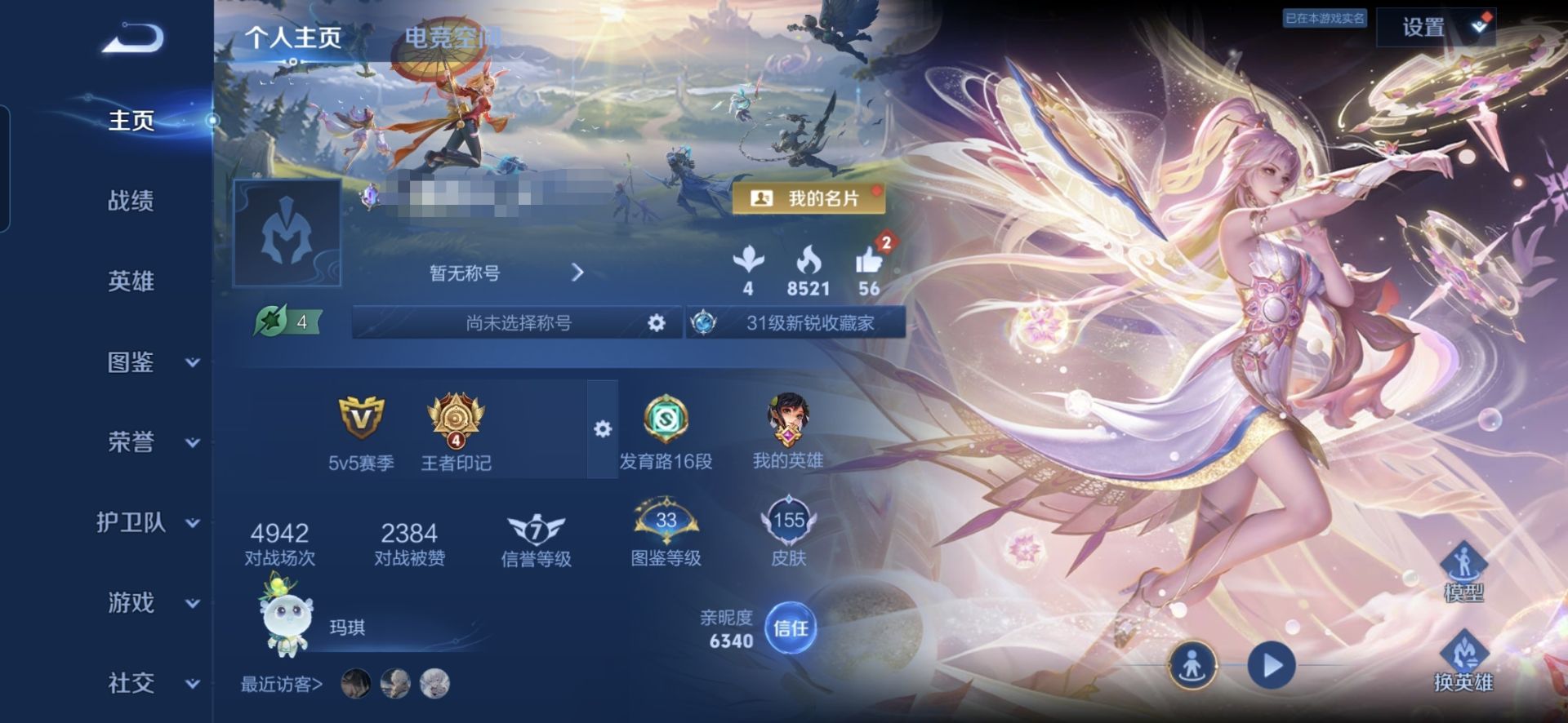 贵族等级:v6皮肤数:156传说品质5 生肖限定1 英雄数:111