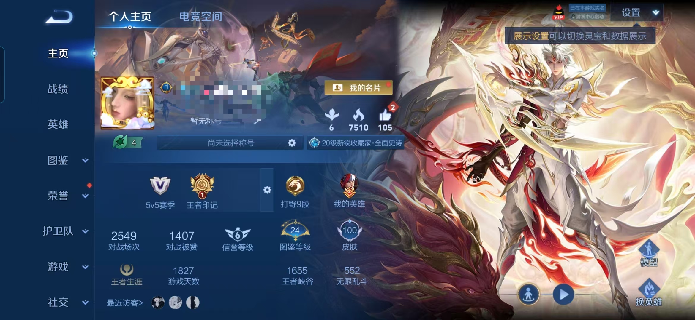 贵族等级:v6皮肤数:100传说品质7 生肖限定2 英雄数:107