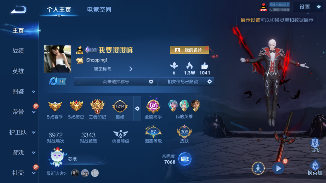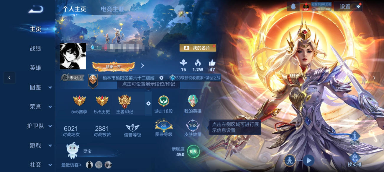 贵族等级:v7皮肤数:168传说品质7 情人节限定1 荣耀典藏2 生肖限定1 英雄数:124
