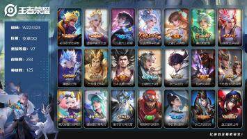 贵族等级:v7皮肤数:124珍品传说3 荣耀典藏1 传说品质6 生肖限定1 无双1 英雄数:117
