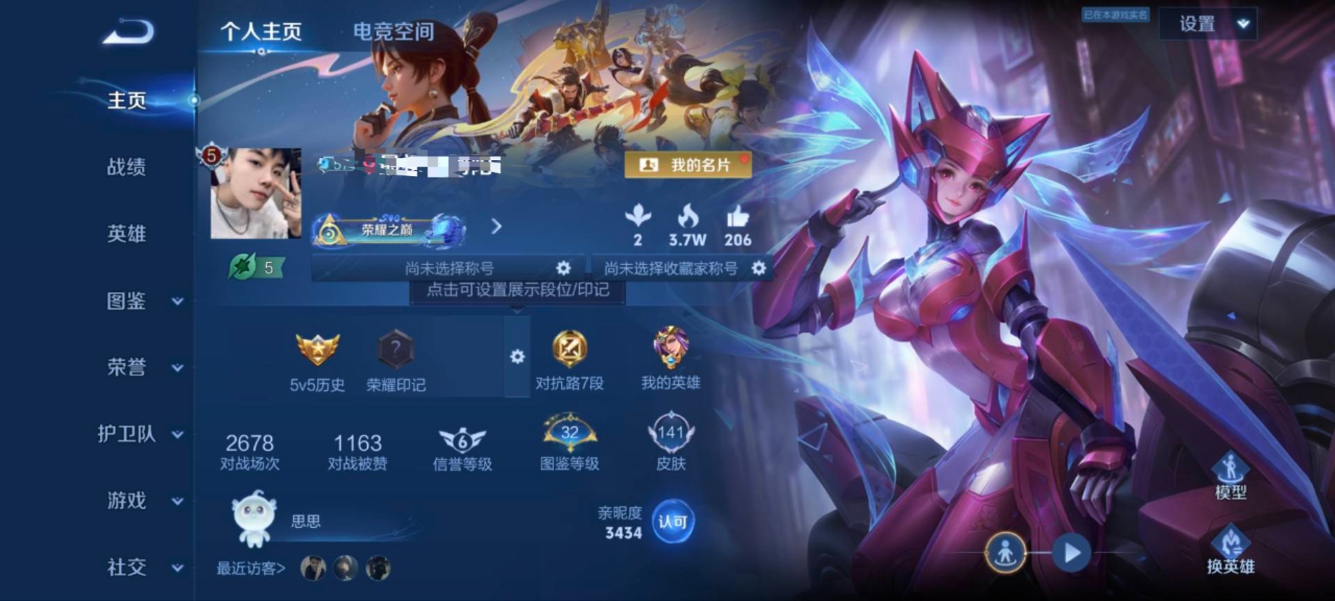 贵族等级:v8皮肤数:163传说品质8 荣耀典藏1 生肖限定1 英雄数:123