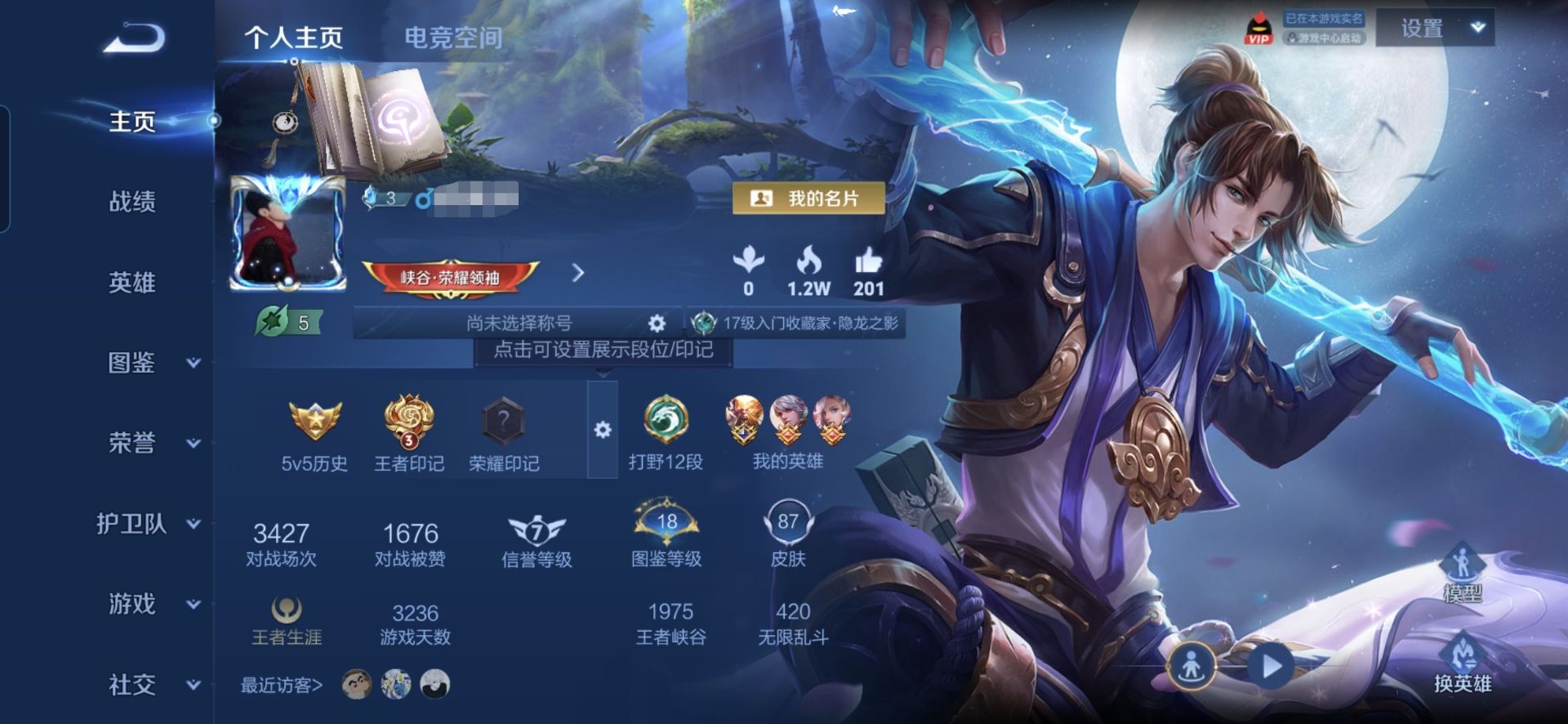贵族等级:v6皮肤数:134传说品质9 生肖限定3 荣耀典藏1 英雄数:121