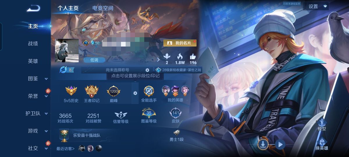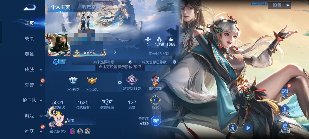 贵族等级:v6皮肤数:200传说品质3 荣耀典藏1 英雄数:125
