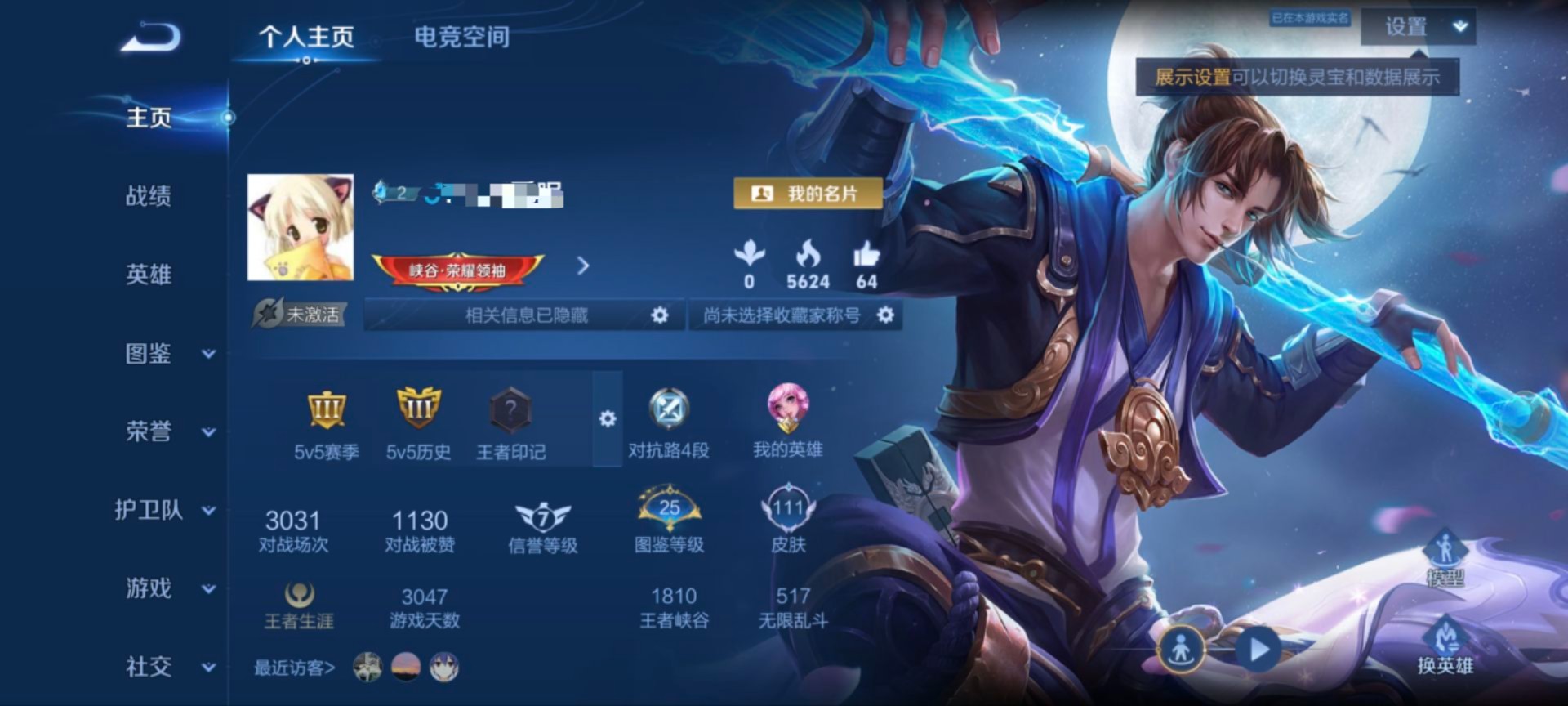 贵族等级:v7皮肤数:111传说品质6 生肖限定3 情人节限定2 荣耀典藏1 英雄数:102