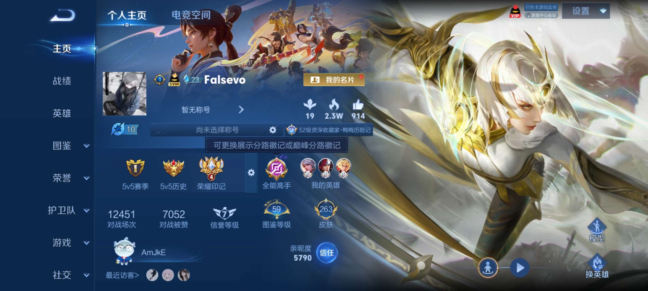 贵族等级:v2皮肤数:70传说品质1 英雄数:110
