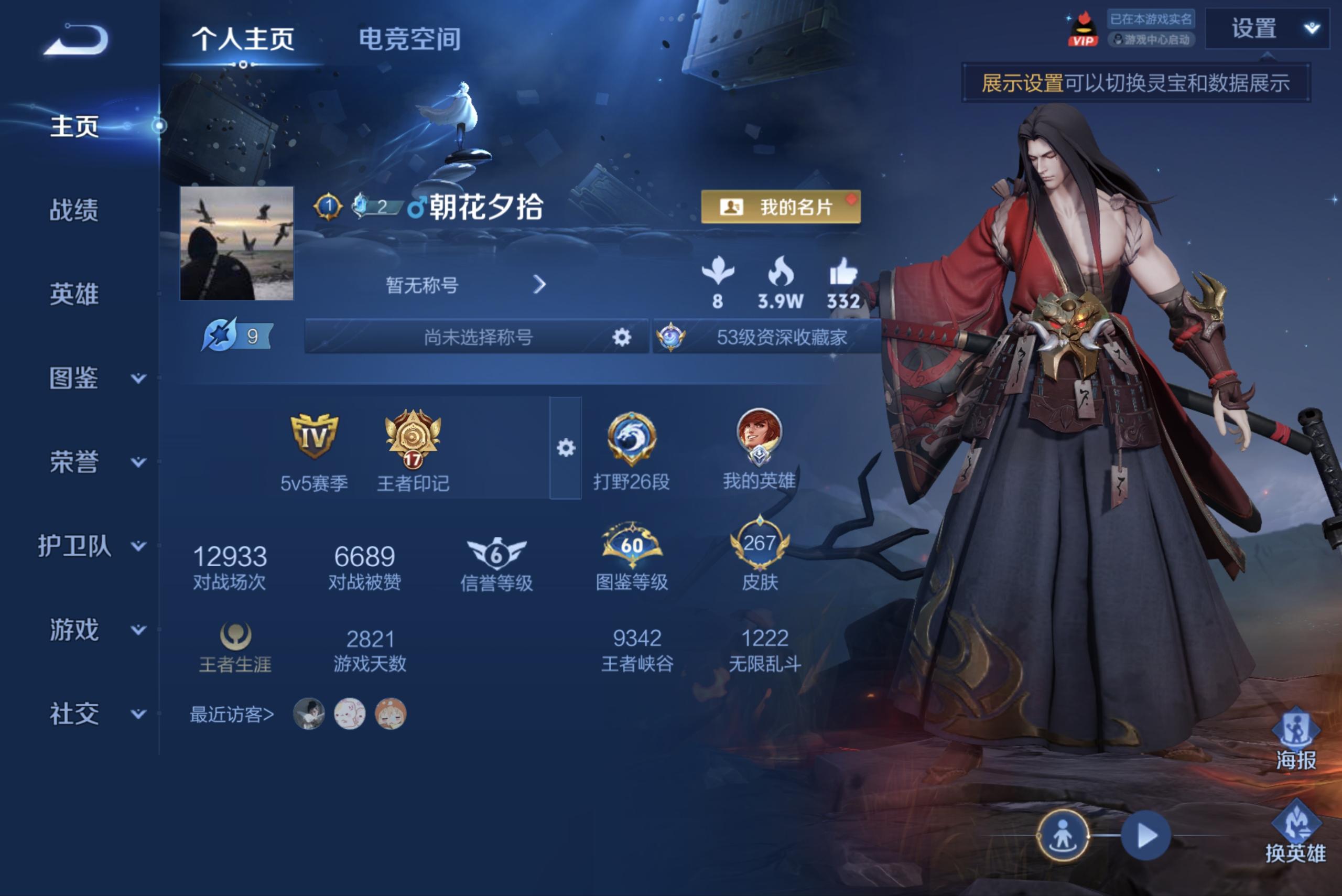 贵族等级:v6皮肤数:211传说品质3 英雄数:120
