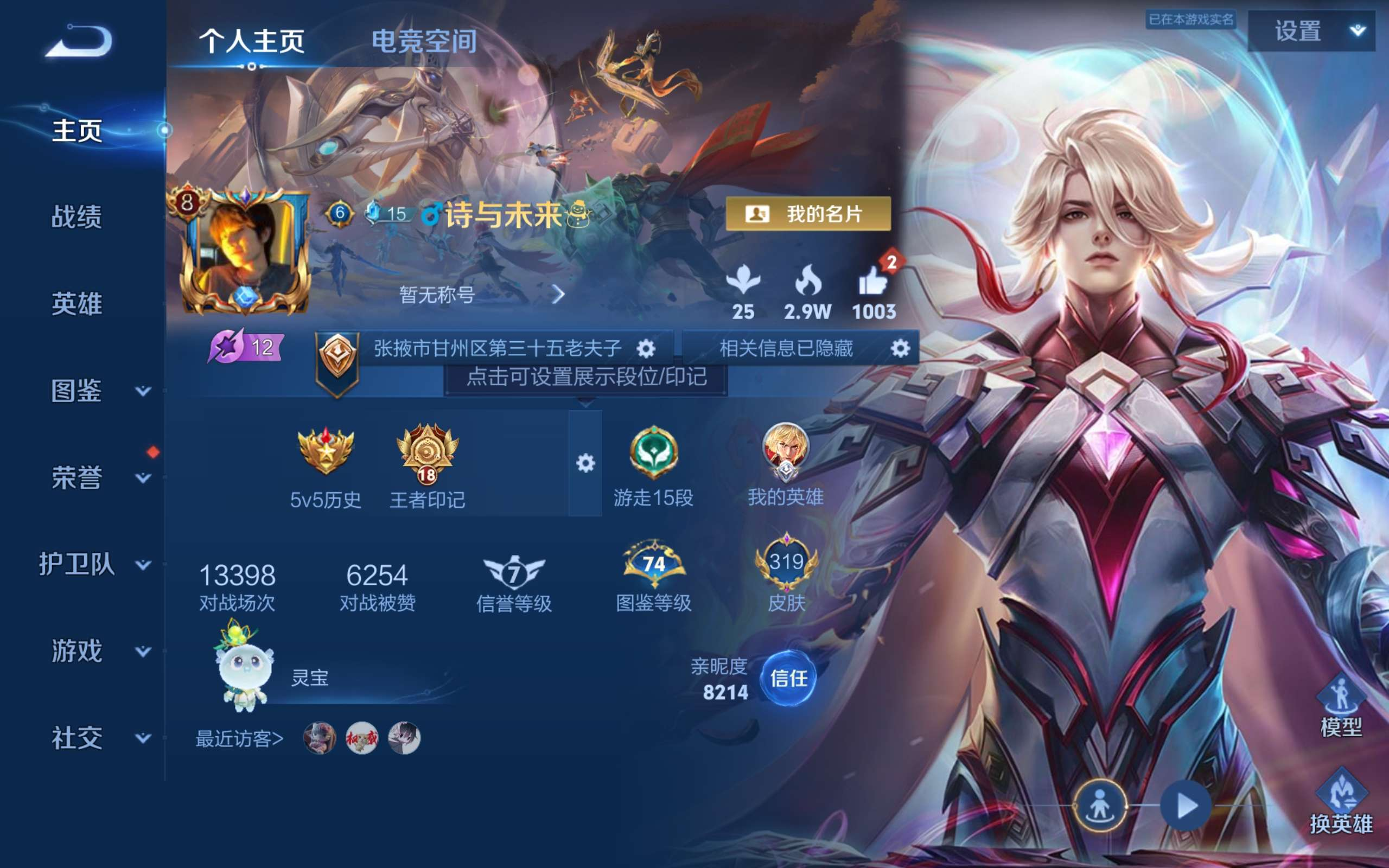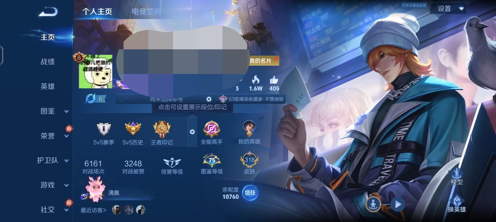 贵族等级:v5皮肤数:106传说品质2 生肖限定1 英雄数:107