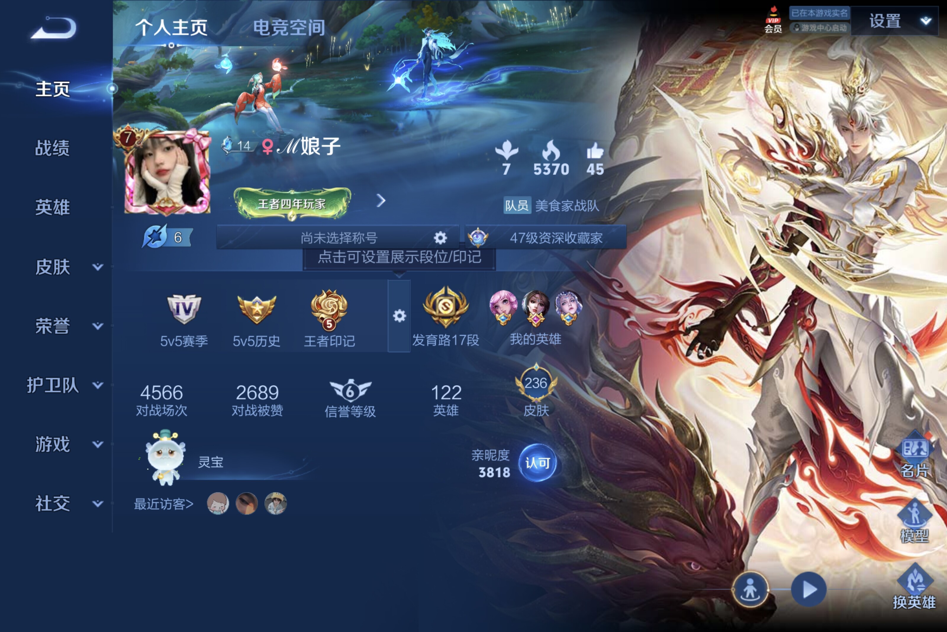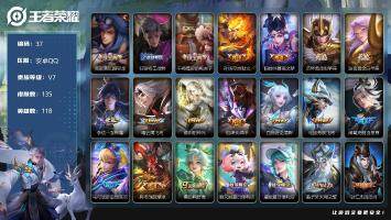 贵族等级:v4皮肤数:117荣耀典藏1 英雄数:106